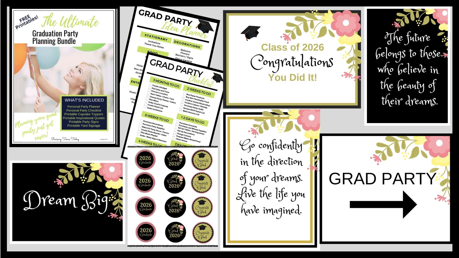 If you’d like to download the rest of my FREE Graduation Party Bundle (new floral designs!) packed with everything you need to host a fab grad party (including a graduation party checklist, visit my FREE Resource Library Page!